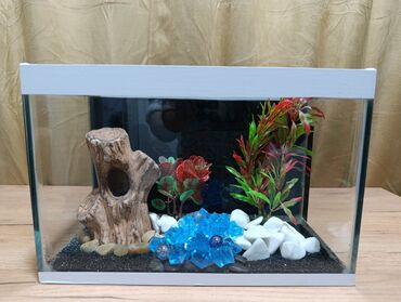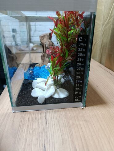 Dördbucaq akvariumAkvarium akvaryum hardasa 10lt su tutur,su qizdirici,arxa fon,termometr,dekor,daslar,bitkiler butov satilir elave betta baliqi da var аквариум аква