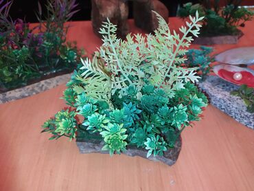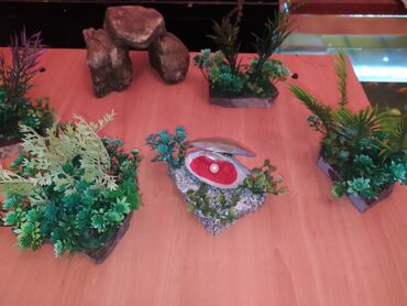 Akvarium üçün aksessuarlar. Daş 3azn, yaşıl ot dekor 3 azn, çehrayı ot 2 azn.Tezedirler. qiymet sonudur.