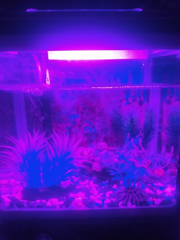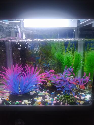 Akvarium (tokla isleyir) Tutumu 15l Uzerine toxunmaqla 5rengde isiqlandirilir Uzerinde filteri,bezekleri,xirda dekorativ das,temizlemek ucun su pompasi,termometr(suyun istiliyini ölçmek ucun) veril...