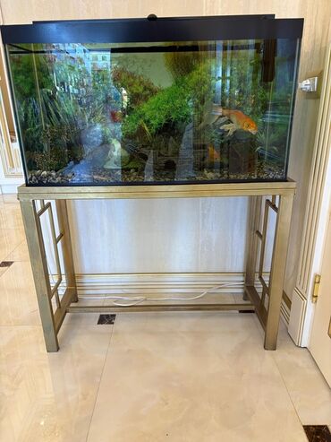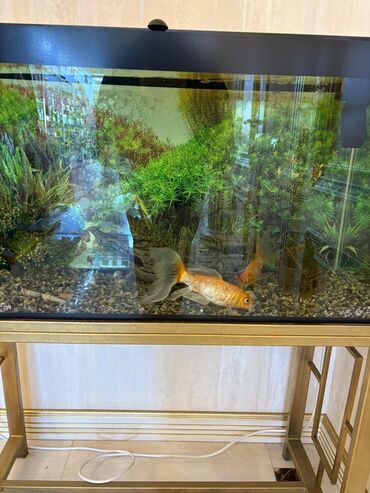 Akvarium, balıqlarla birlikdə satılır 120 AZN. Ödənişli çatdırılma ilə Akvariumumu balıqlarımla birgə satıram. Baxmağa şəraitim olmadığı üçün satmaq məcburiyyətində oldum. 10 balıq var, 6sı xırda,...