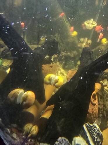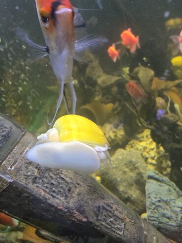 - Canlı, parlaq sarı qabıqlı salyangozlar – akvariuma dekorativ rəng qatır.