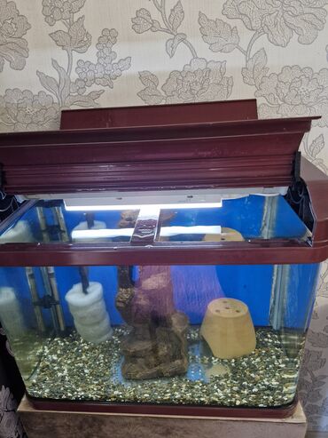 salam akvarum satılır bütün ləvazimatlariyla birgə filtri yem qabı su qabı suzgeci evi 15baligla birge