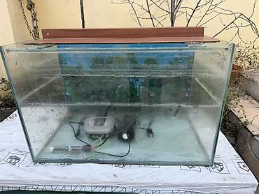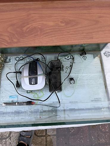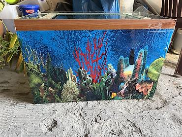 - Şüşə akvaryum, üstündə taxta dekorativ qapaq