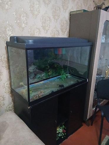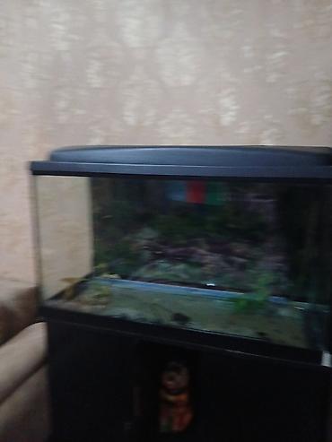 - Geniş şüşə akvaryum, qara rəngli üst qapaqla