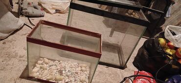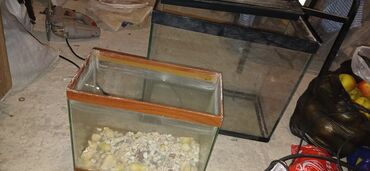 - Şəkillərdə 2 ədəd şüşə akvaryum: biri böyük, biri orta ölçülü