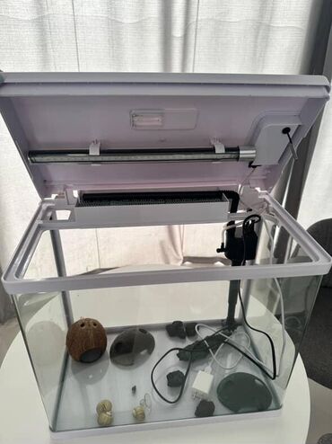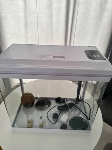 - Şüşə akvaryum, ağ qapaqlı korpus