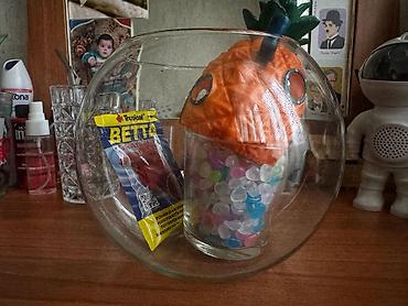 - Şüşə balıq qabı (kürə formalı), dekorativ stolüstü akvaskeyplər və betta balıqları üçün uyğun ölçü.