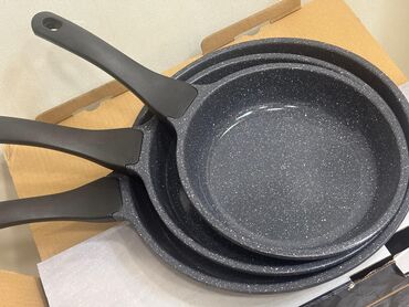 Qab-qacaq: 3 ədəd qızartma tavaları dəsti - Ölçülər: təxminən eyni diametrli orta ölçü (yumurta, omlet, kotlet, pancake və tərəvəz qızartmaları üçün ideal). - Material: qalın dibli alüminium/metal...