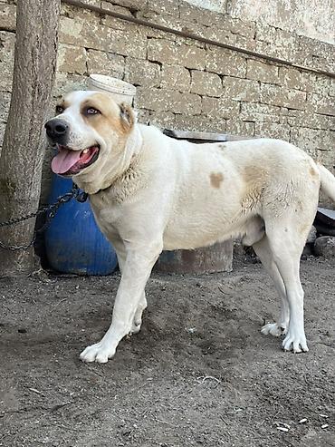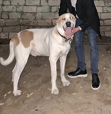 Məhsul: Alabay (Orta Asiya çoban iti) – erkək Xüsusiyyətlər: - Güclü bədən quruluşu, geniş döş qəfəsi və möhkəm pəncələr - Ağ rəngli xəz, baş və qulaq nahiyəsində tünd ləkələr - Hündürboy, iri ölç...