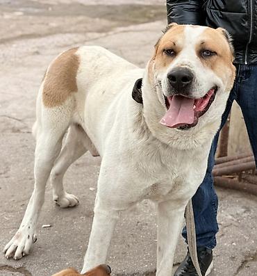 İt – iri cüssəli, güclü və balanslı quruluşlu Alabay (Mərkəzi Asiya çoban iti) tipli erkək. Xüsusiyyətlər: - Rəng: boz-çəhrayı-brindle tonlarında, sinə, boyun və pəncələrdə ağ. - Baş: geniş kəllə q...
