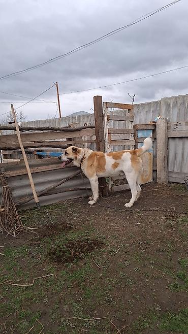 Cins: Orta Asiya çoban iti tipli (alabay tipajı) Yaş: balalıq dövrü Rəng: ağ-şabalıdı, üzündə tünd maska Zəncir və taxta darvaza daxmalı yerə öyrəşib Xüsusiyyətlər: - Həyətyanı sahə və fermalar üç...