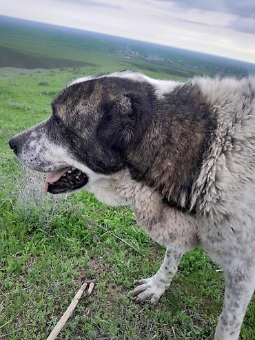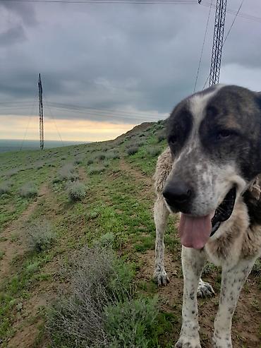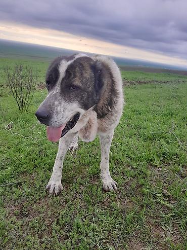İt – iri cüssəli, güclü və balanslı quruluşlu Alabay (Mərkəzi Asiya çoban iti) tipli erkək. Xüsusiyyətlər: - Rəng: boz-çəhrayı-brindle tonlarında, sinə, boyun və pəncələrdə ağ. - Baş: geniş kəllə q...