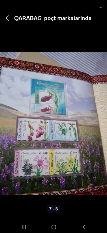 Markalar. Azərbaycan və xarici markalar. Qiyməti 1 seriya+blok 4 azn Başqa seriyalarda var. Rayonlara poçtla göndərirəm.