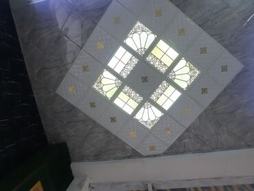- Material: yüngül alüminium/profil karkaslı asma tavan, alçıpan və PVC əsaslı dekorativ panellər