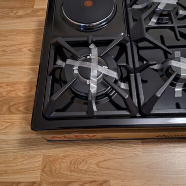 Qaz peci qaz plitesi piltesi peci peçi..Firma Galaksi Elektroniks ..3 qaz 1 elektirikli resotkalari qalin tokme cugun..caxmaqli ozu yanan ...sethi paslanmayan nerjavika..ruckalar istiliye davamli m...
