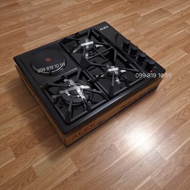 ALEV quraşdırılan qaz paneli - 3 qaz ocağı + 1 elektrikli göz - Sağda mexaniki idarə paneli: 4 ədəd fırlanan düymə, alov tənzimlənməsi -ruçkaları istiliye davamli metal yanmaz erimez - reşotkala...