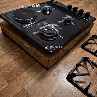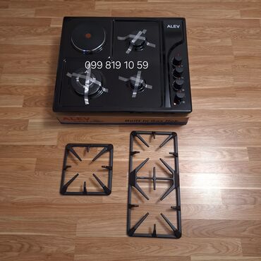 EZEL quraşdırılan qarışıq soba paneli - Yanacaq növü: 3 qaz ocağı + 1 elektrikli disklik (solda) - İdarəetmə: sağ zolaqda 4 ədəd fırlanan mexaniki düymə - Alov mənbələri: fərqli ölçülü üç qaz gözü...