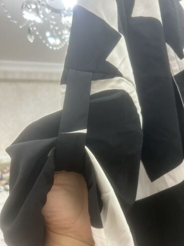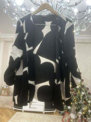 - Rəng və naxış: qara-ağ, iri qrafik print