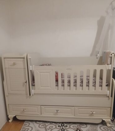 Körpədən məktəbəqədər mərhələyə qədər praktik istifadəyə uyğun, otaqda yerə qənaət edən çoxfunksiyalı beşik/dolap sistemi.