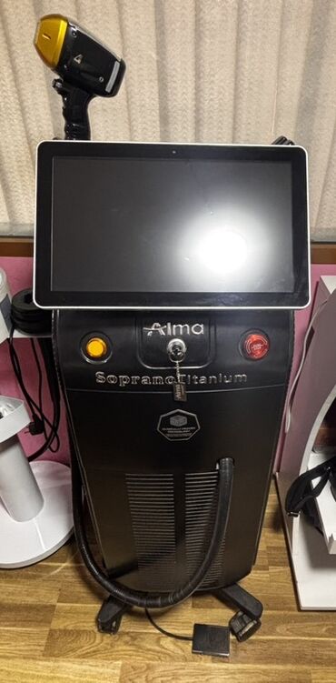 Soprano Titanium lazer epilyasiya aparatı - Peşəkar salonlar üçün nəzərdə tutulmuş diod lazer sistemi - Korpus üzərində böyük toxunma ekranı (idarəetmə paneli açarla bloklana bilir) - İki ədəd erg...