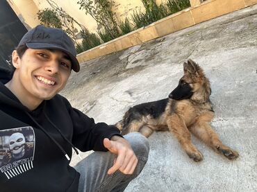 Alman çoban iti – dişi - Cins: German Shepherd (Alman çoban iti) - Rəng: qara-qəhvəyi, arxası qara, sinə və pəncələr qızılı - Quşqulaq, güclü bədən quruluşu, çevik və aktiv - Ağıllı, itaətə meyill...