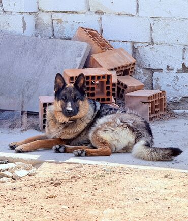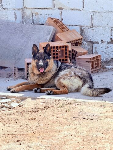 Alman ovçarkası Dişi 1yaş 7aylıq. Aktiv, sağlam və ağıllı itdi peyvend olunub. Dişidi 1yaş 7 aylıqdı.