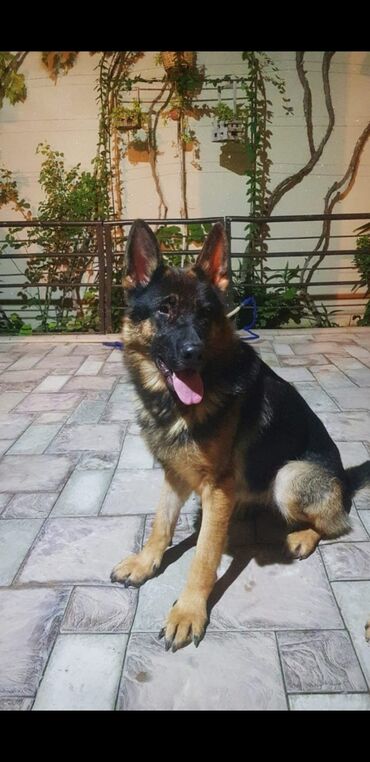 Alman çoban iti – dişi - Cins: German Shepherd (Alman çoban iti) - Rəng: qara-qəhvəyi, arxası qara, sinə və pəncələr qızılı - Quşqulaq, güclü bədən quruluşu, çevik və aktiv - Ağıllı, itaətə meyill...