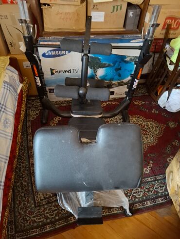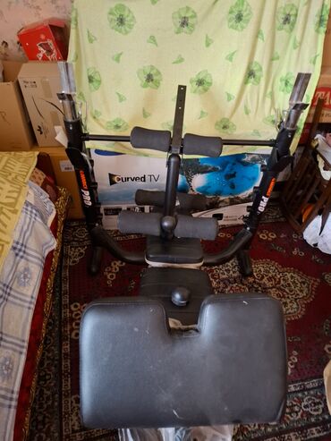 Çoxfunksiyalı fitnes skamyası - Üst və oturacaq hissəsi qara rəngdə, qırmızı haşiyəli yumşaq süni dəri örtüklüdür. - Güclü metal karkas, sabit T-şəkilli dayaq. - Əlavə oturacaq/dirək və aşağı hiss...