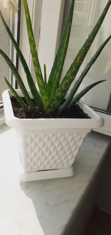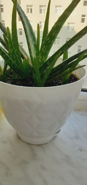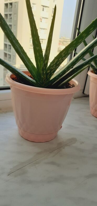 Aloe vera (Aloe barbadensis) otaq bitkisi – müxtəlif ölçülü plastik dibçəklərdə.