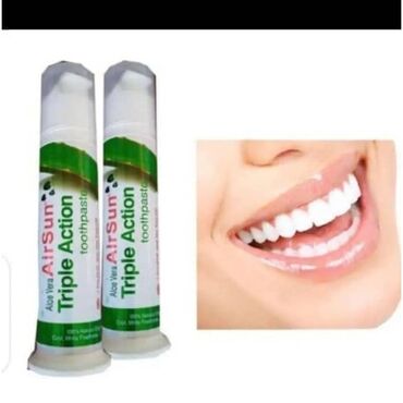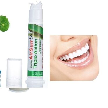 Ödənişli çatdırılmaDiş minasına qulluq üçün nəzərdə tutulmuş,Tam tebii aloe vera ekstraktı ilə zənginləşdirilmiş AirSun Triple Action diş pastası 🥰👍təklif olunur. Bu diş pastası üçqat təsir göstərərək ağız boşluğunun hərtərəfli təmizliyini və gigiyenasını təmin edir. Diş daşlarini temizleyir dısleri super agardir 👍 Gündəlik istifadə üçün uyğundur. Tərkibindəki aloe vera sayəsində diş ətlərini sakitləşdirir və dişləri gücləndirir.
