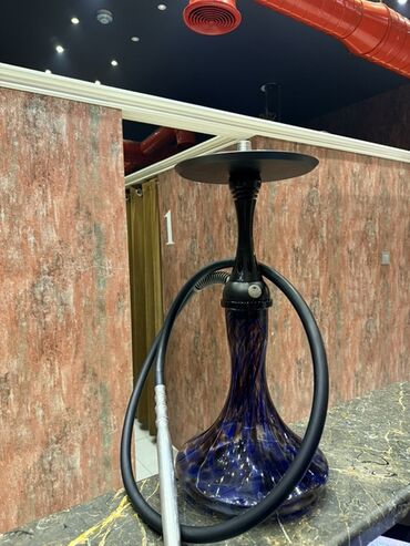 - Komplekt: şüşə kolba (dərin mavi-bənövşəyi naxışlı), metal gövdə, külqabı/layner diski, şlanq çıxışı olan konnektor, elastik silikon şlanq, metal ucluq, üst hissədə tütün kasası və istilik idarəedici aksesuar