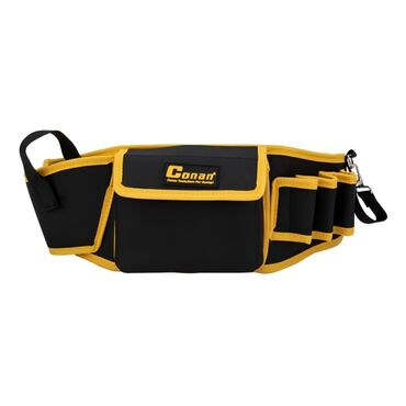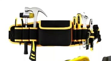Çoxbölməli alət kisəsi - Material: qalın süni/bərk dəriyə bənzər material, perçinlərlə möhkəmləndirilmiş konstruksiya - Rəng: qara - Ön hissə: bir böyük əsas bölmə, üzərində əlavə səth cibləri; yu...