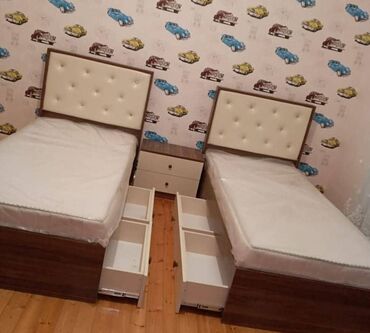 İki ədəd tək nəfərlik çarpayı dəsti cox az isdifade olunub hec bir problemi yoxdur bazaldır bir ededi 200 mat ikisin alana endirim olacag - Ölçü: tək nəfərlik (standart single). - Rəng: açıq kr...