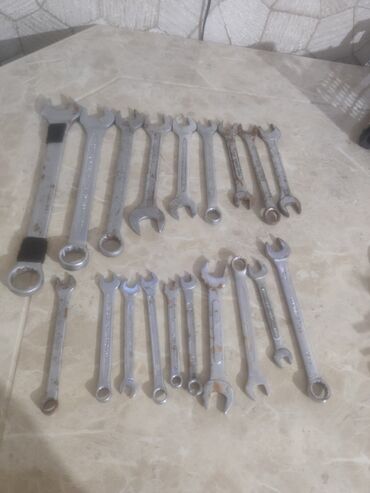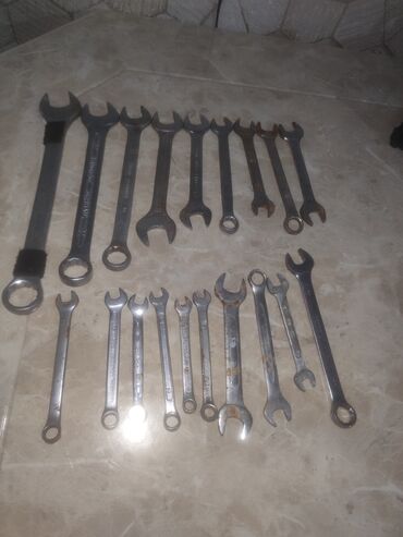 Metaldan hazırlanmış, mexaniki işlər, avtomobil və məişət təmiri üçün əlverişli geniş dəst. Fərqli ölçülər müxtəlif bolt və qozalara uyğun gəlir, həm professional, həm də ev istifadəçiləri üçün uyğundur. Fotoşəkillərdə bütün alətlər ayrı-ayrılıqda göstərilib.