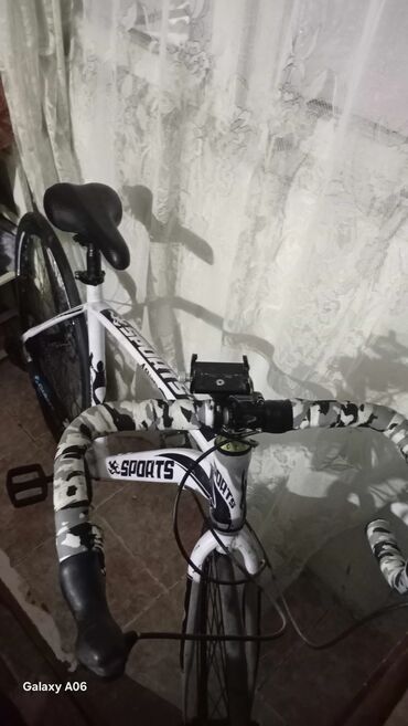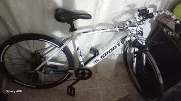 Şəhər/şosse tipli velosiped – “SPORTS” yazılı, ağ-qara rəng sxemi