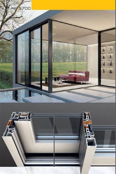 - Yüksək keyfiyyətli alüminium profillərdən hazırlanmış sürgülü panorma qapı-pəncərə sistemi