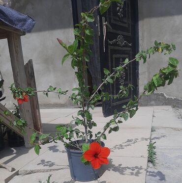 3) Hibiskus (Çin qülü) – narıncı-qırmızı iri çiçəklər, budaqlı kol formasında. Günəşli yerləri sevir, isti mövsümdə açıq havada da saxlanıla bilər. Mütəmadi budama ilə daha çox çiçək verir, suvarmanı nizamlı edin.