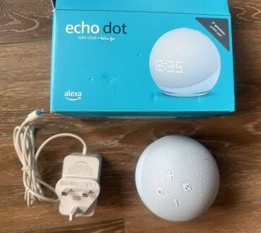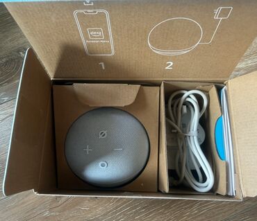- Qutunun içində: Echo Dot with Clock cihazı, orijinal enerji adapteri və kabeli, sənədlər.