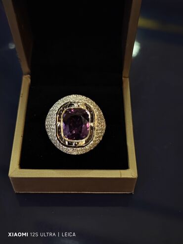 Amerikadan alınıb şərqi mali qızıl üzük 585 prob Təbii Aleksandrit daşı 12 karat ve ag swarovski bezedilib çəki 18.28 qr
