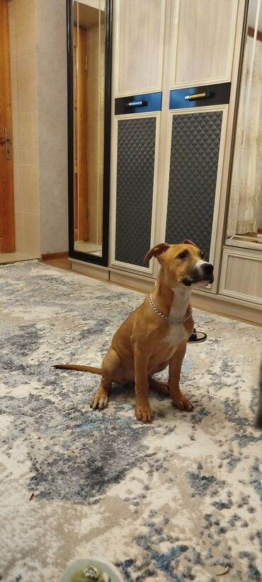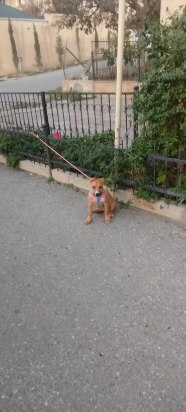 Amerikan Pit Bull Terrier tipajında gənc it.