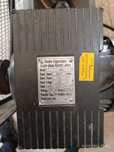 Hava kompressoru “Тигр” (Air Compressor) Texniki göstəricilər (etiketdən): - Güc: 3 HP - Gərginlik: 220 VAC - Tezlik: 50 Hz - Cərəyan: 7.5 A - İzolyasiya sinfi: B - Fırlanma sürəti: 2850 dövr/dəq ...