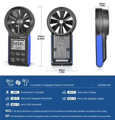 ✅️ LCD displeyli Smart APP əl anemometri, məlumatları saxlamaq asandır, açıq anemometr müxtəlif açıq hava fəaliyyətləri üçün uyğundur, məsələn: yelkənli, dronla uçuş, atəş, balıqçılıq, gəzinti və s.