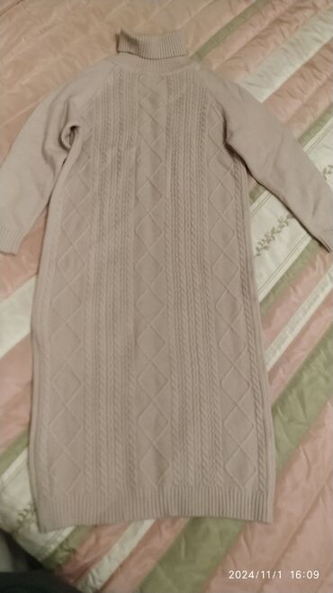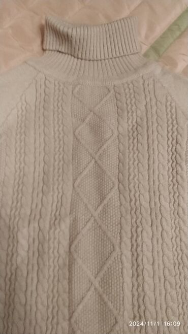 Qadın sviteri – qara rəngdə, toxunma trikotaj. - Model: uzunboy, uzunqol - Yaxa: hündür/boru yaxa (qatlanan), elastik rezinli - Material: yumşaq trikotaj (akril/qarışıq ola bilər), isti saxlayan - ...