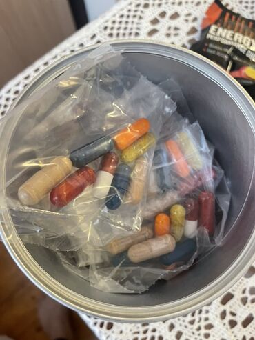 - Qutunun içi: müxtəlif rəngli kapsullar şəffaf fərdi paketlərdə