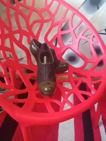 Polu sapaşki. Türkiyə istehsalı. Ölçüsü - 40, Qəhvəyi rənğdə kombina edilmiş zamuj dəri. Kabluk - 9 sm. Qiyməti - 70 manat.