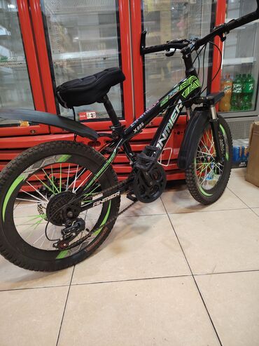 Şəhər içi və yüngül off-road üçün uyğun, rahat idarəetmə və stabil sürüş təmin edir. 7up və içki soyuducuları fonunda çəkilib, məhsul velosipeddir.