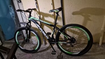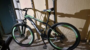 - Ölçü: 29” təkərlər (şinlər geniş profilli, yaşıl-ağ dekorlu disk haşiyələri)