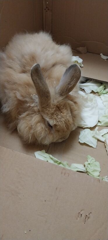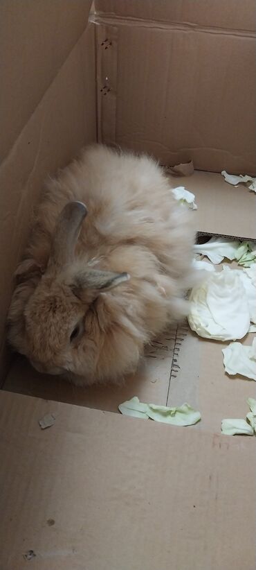 Şəkillərdə göstərilən dovşan karton qutuda və kələm yarpaqları ilə təsvir olunub.