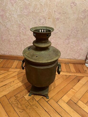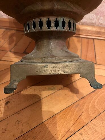 - Yanacaq tipi: klassik kömür/odunla işləyən samovar (mərkəzi odluq, tüstülük və hava deşikləri)