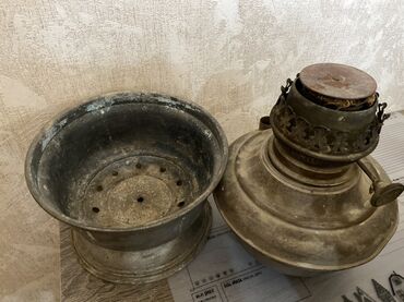 Antik kerosin lampası (samovar tipli gövdə) - Material: metal gövdə